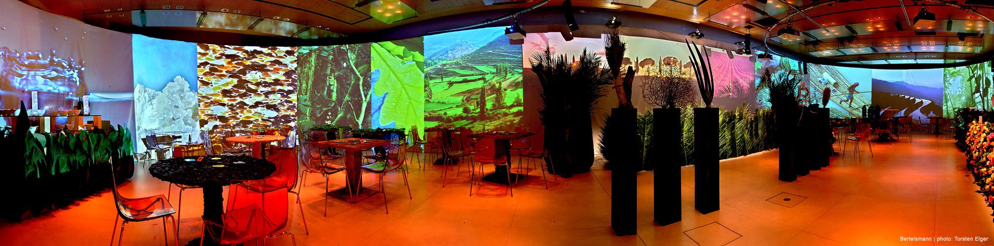 Aufgabe: Eventdesign, Gesamtkonzept, Multiscreen-Projektion, Content-Produktion, Lichtshow